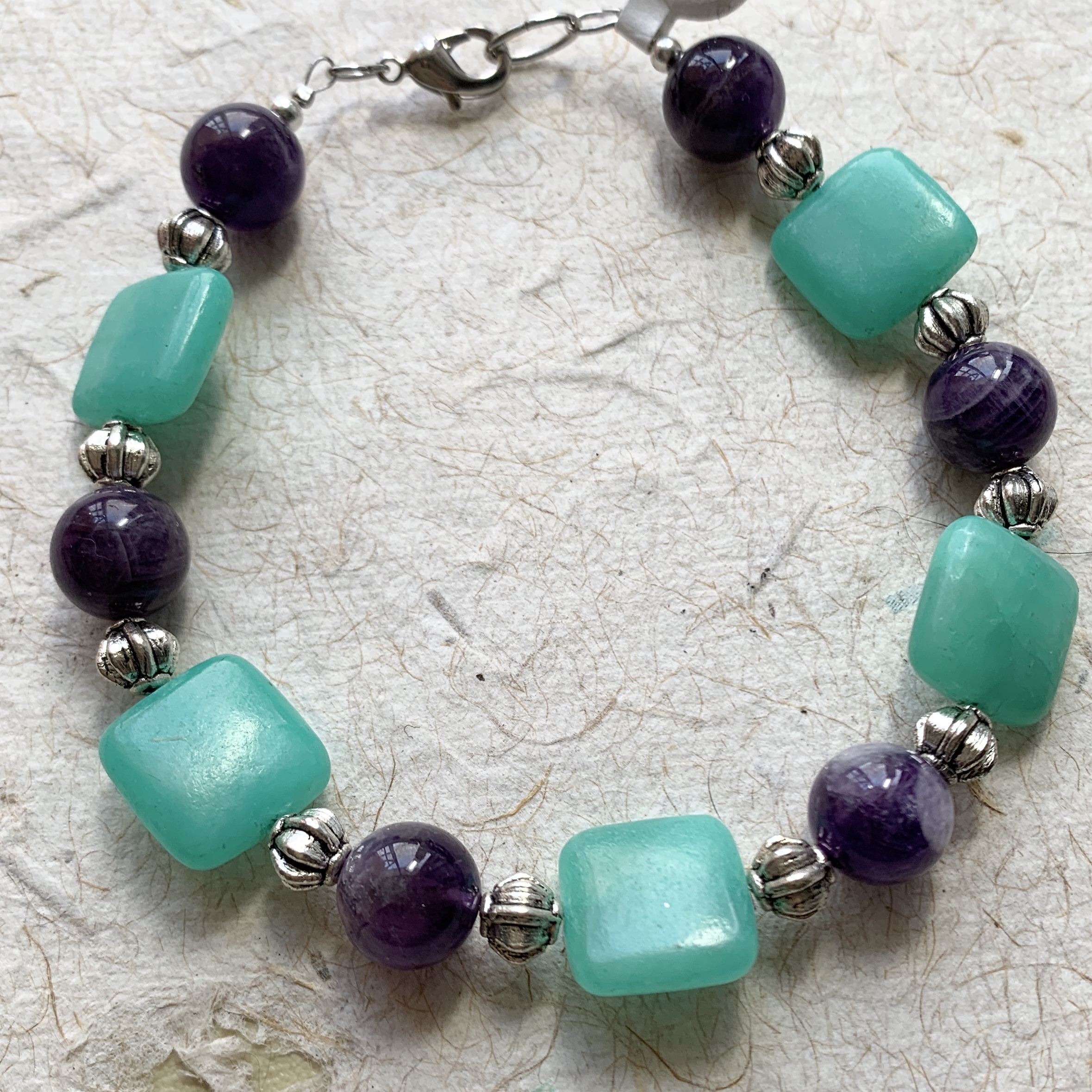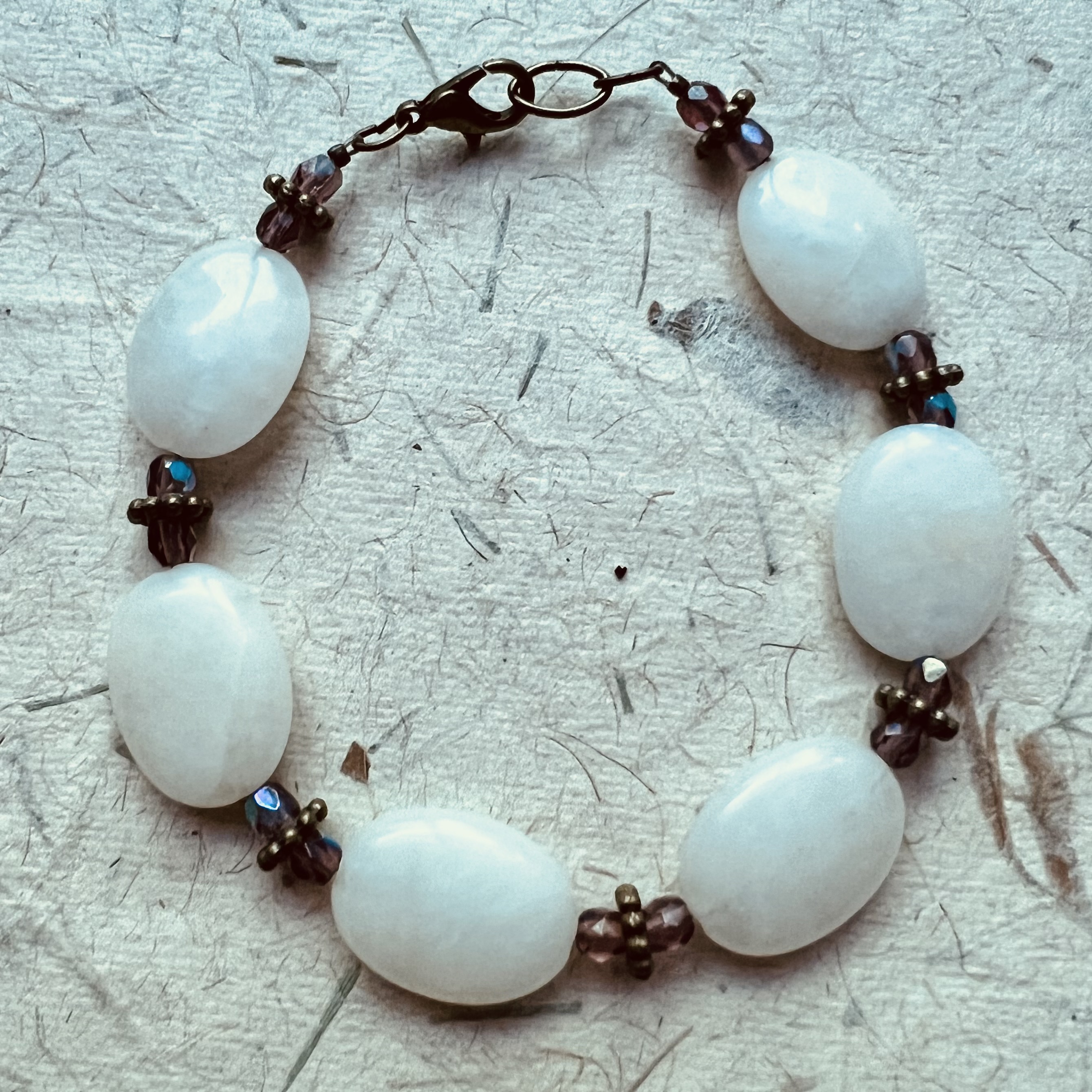 Mountain Shrine Bracelet $25.00 White jade with purple Czech beads