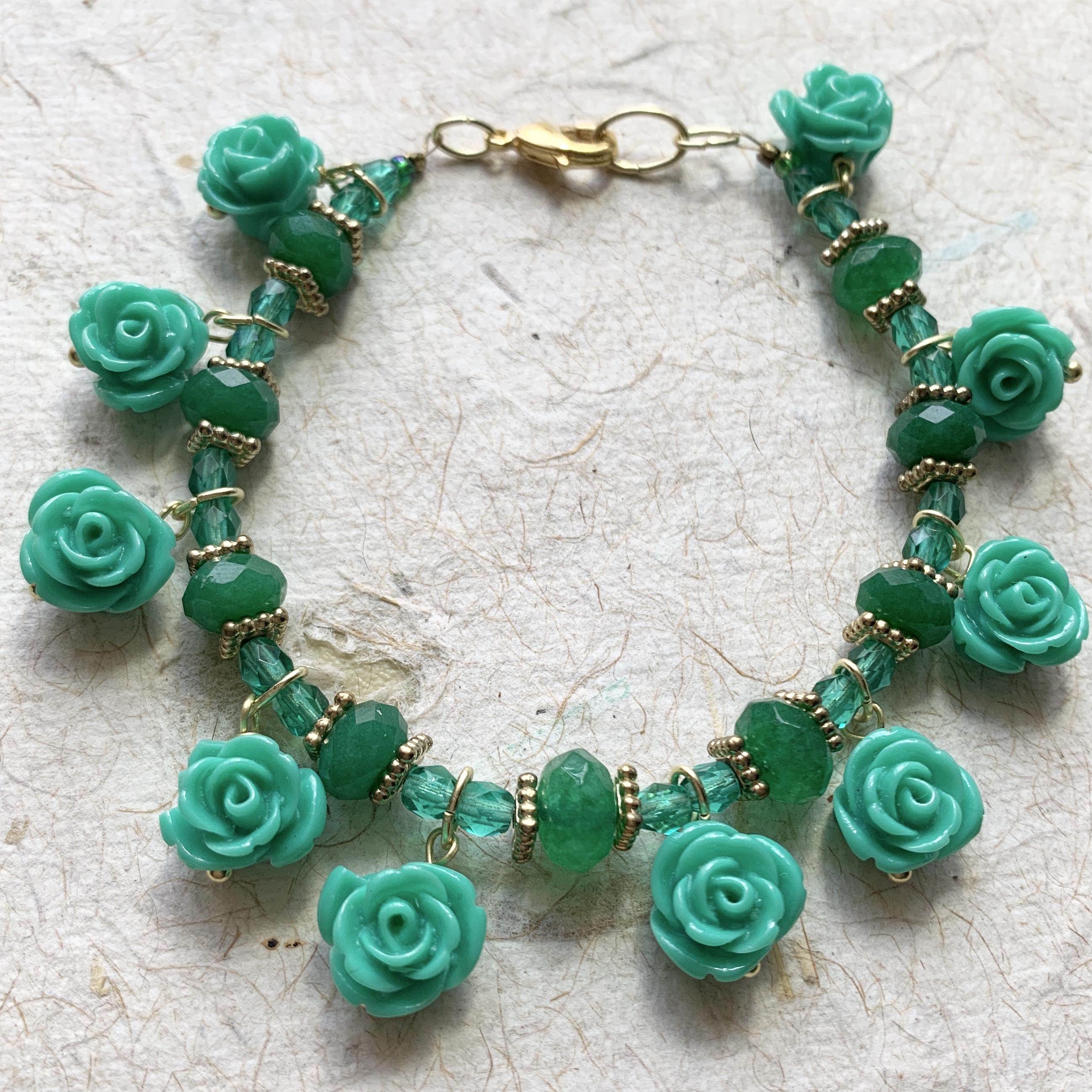Rose Above Bracelet $25.00 Lucite roses and Czech crystal beads