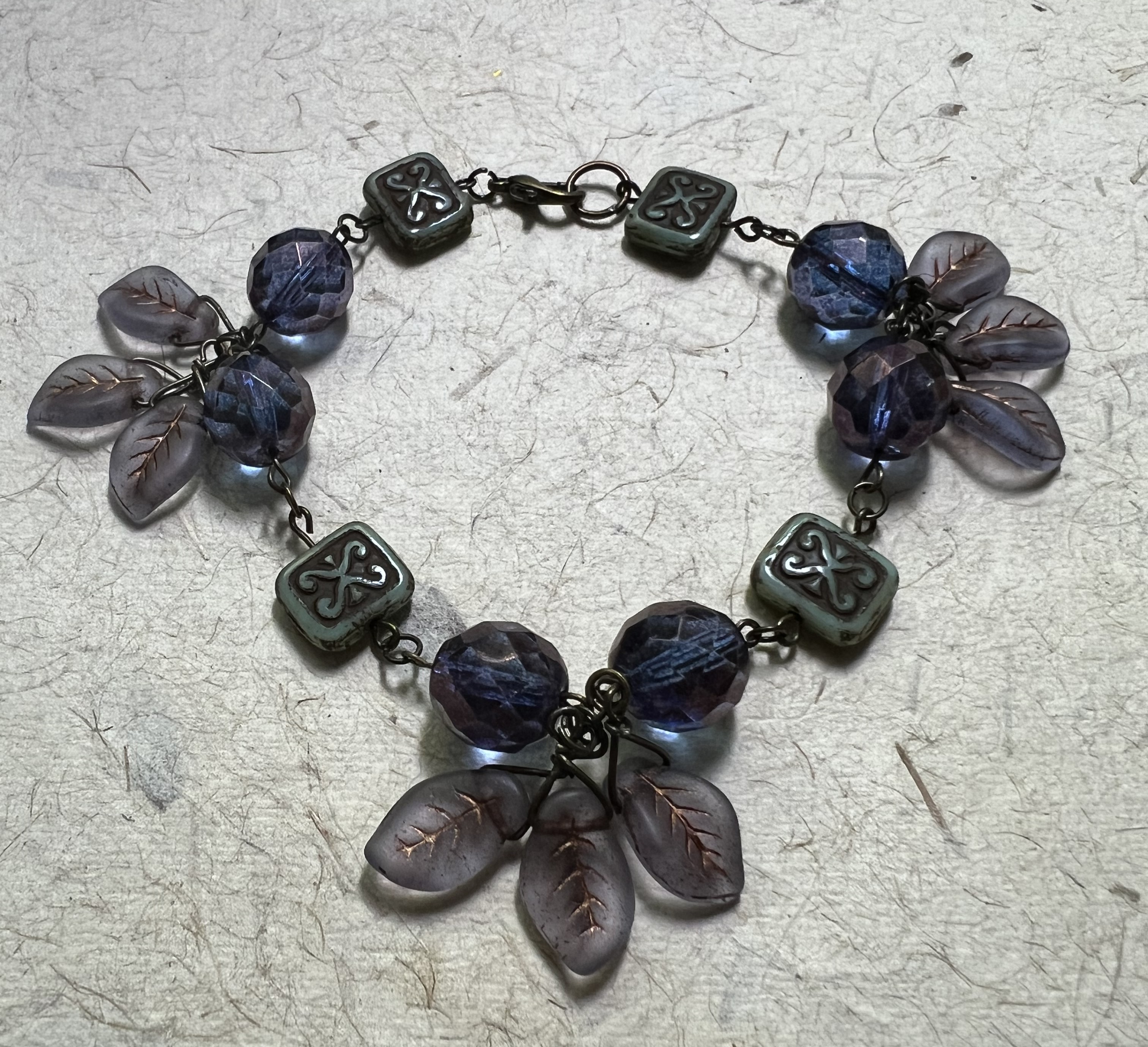 | Celtic Dusk Bracelet $35.00 Czech beads and leaves