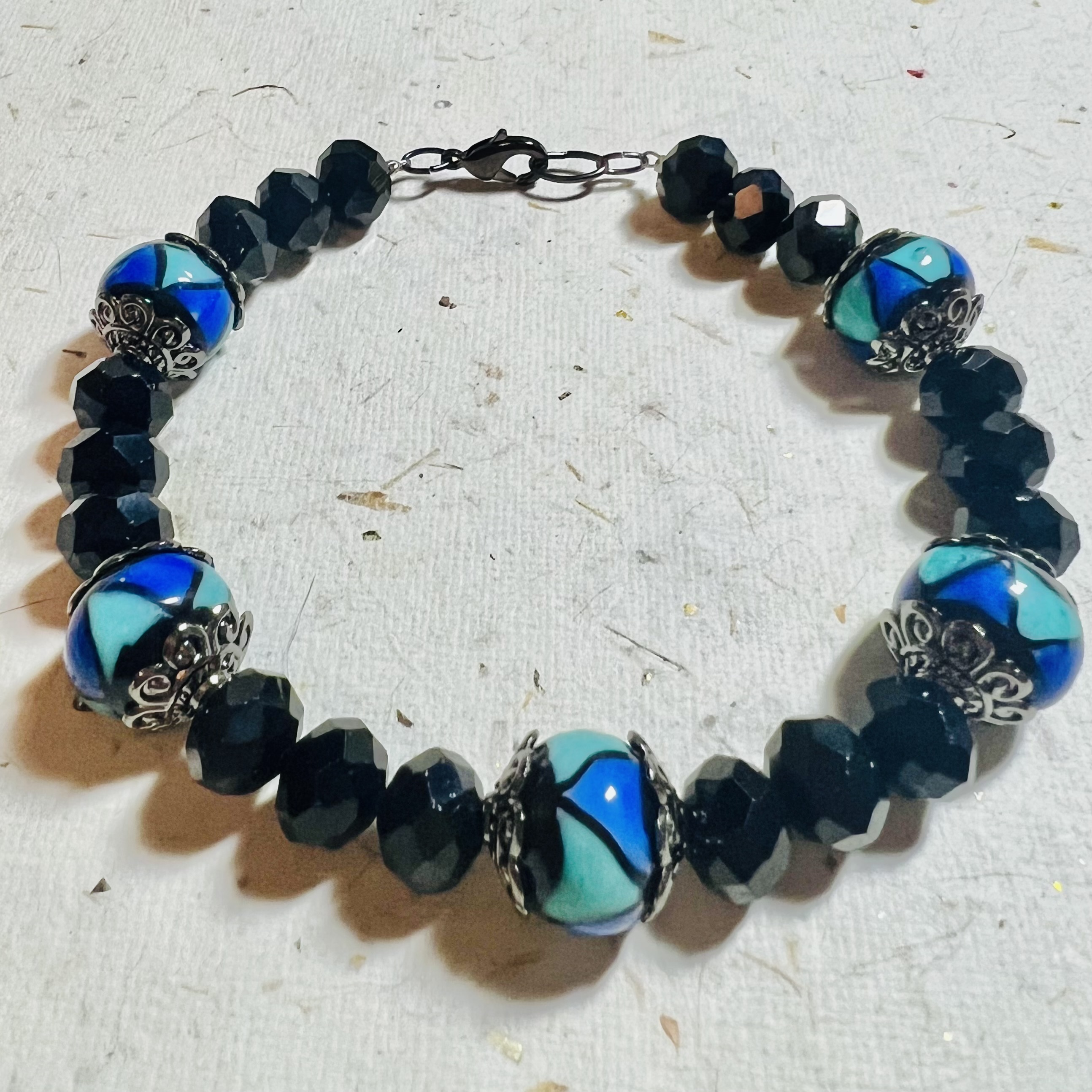 | Garden Blue Bracelet $40.00 Hand painted beads with Czech beads