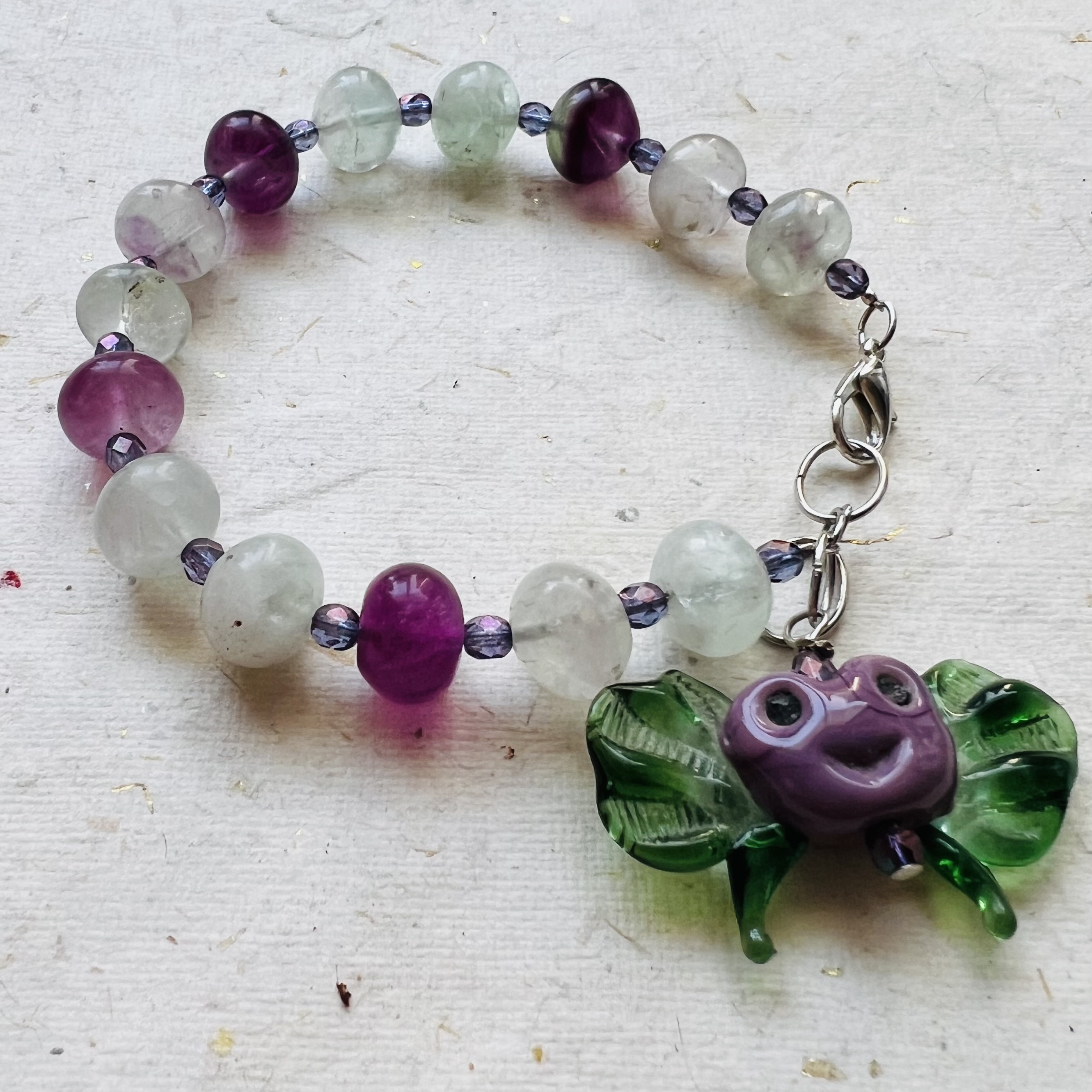 | Fairy Frog Fated Bracelet $35.00 Fluorite, Czech beads and OOAK lampwork frog