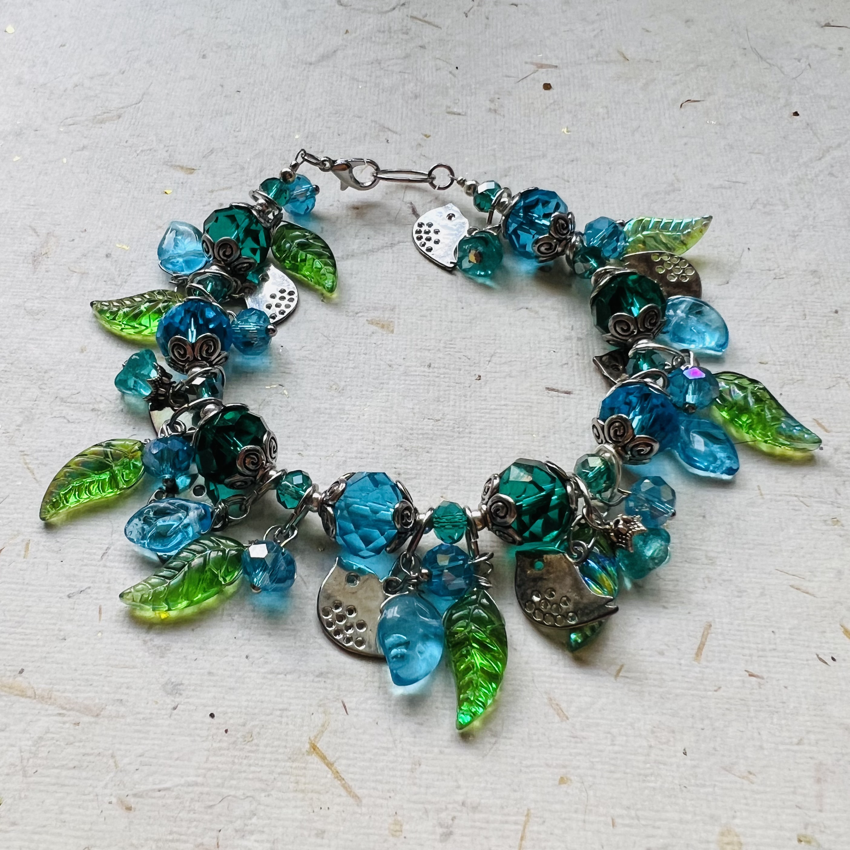 Birdwatcher Bracelet $45.00 Czech beads with silvery bird charms