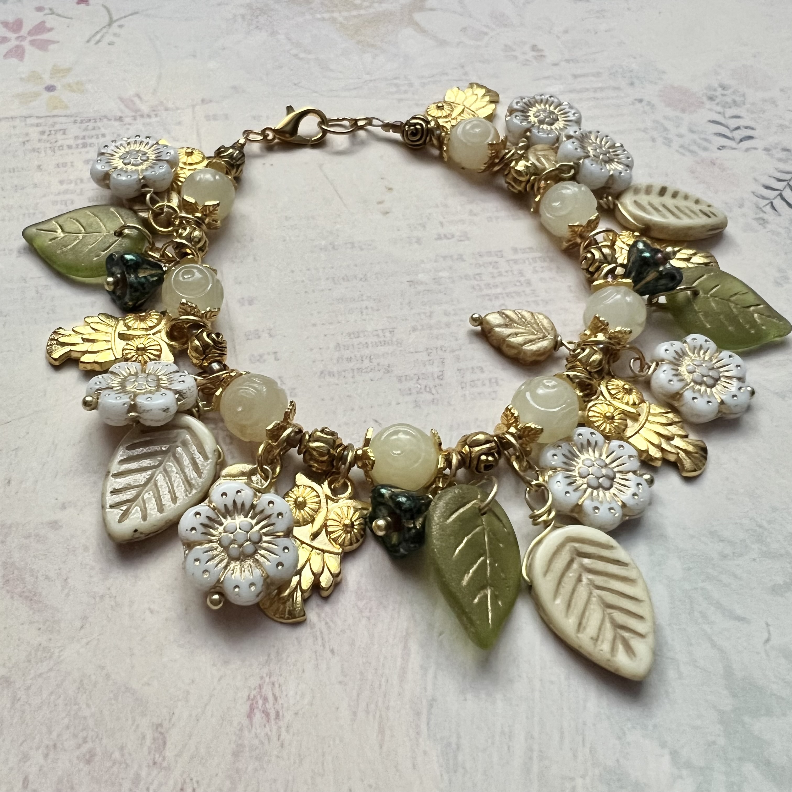 | Last Light Bracelet $45.00 Czech blossoms and leaves