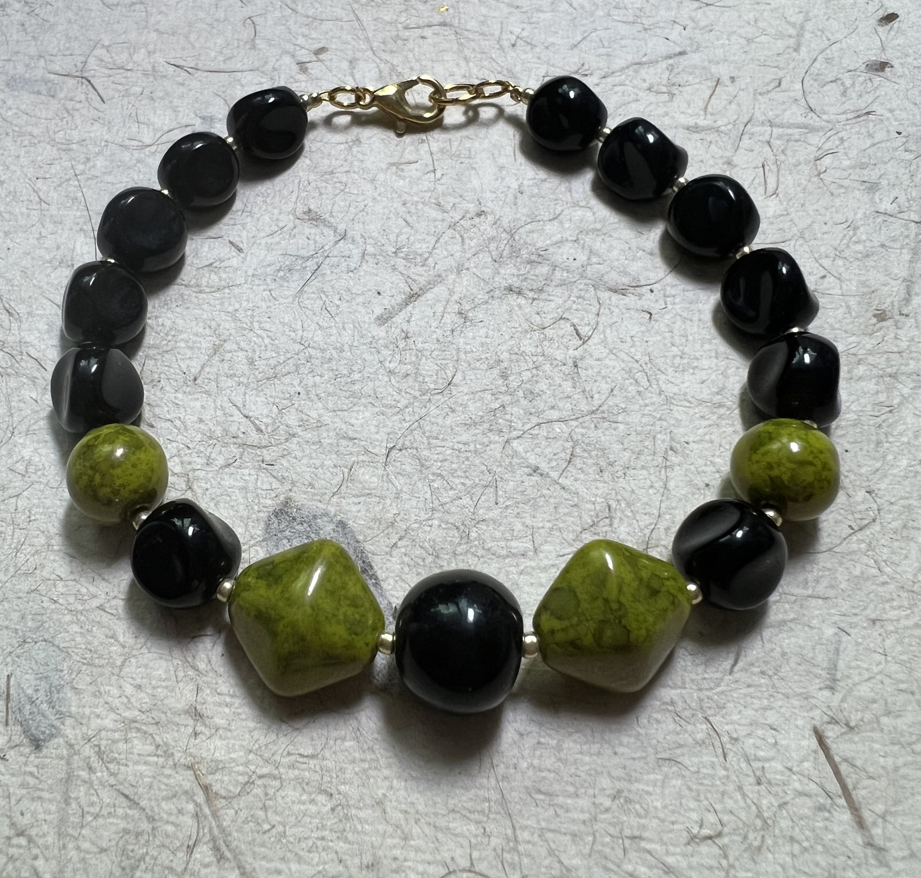 | Lothlorien Bracelet $45.00 Czech beads and brass toggle clasp