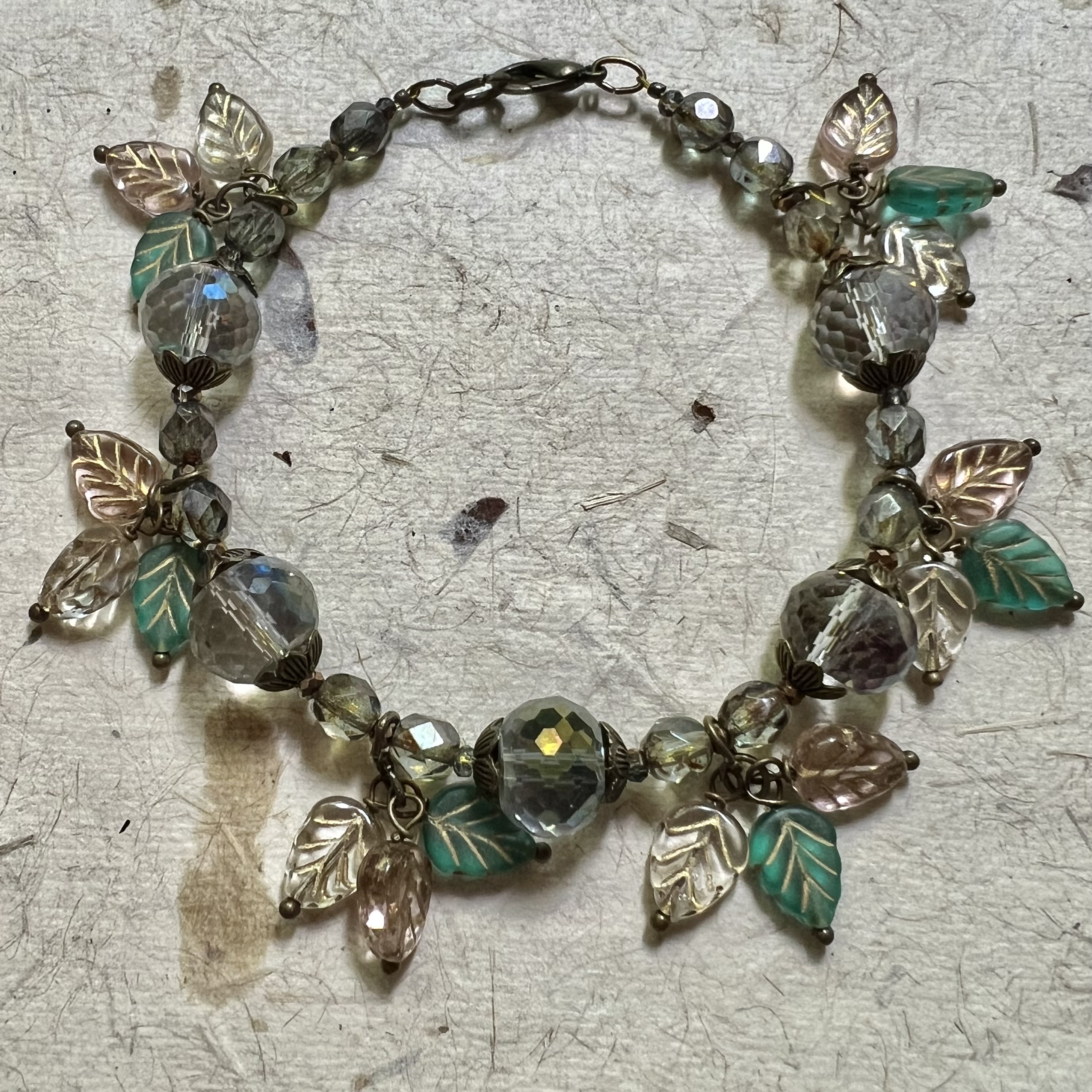 | Elvish Bracelet $35.00 Czech leaves and crystal beads