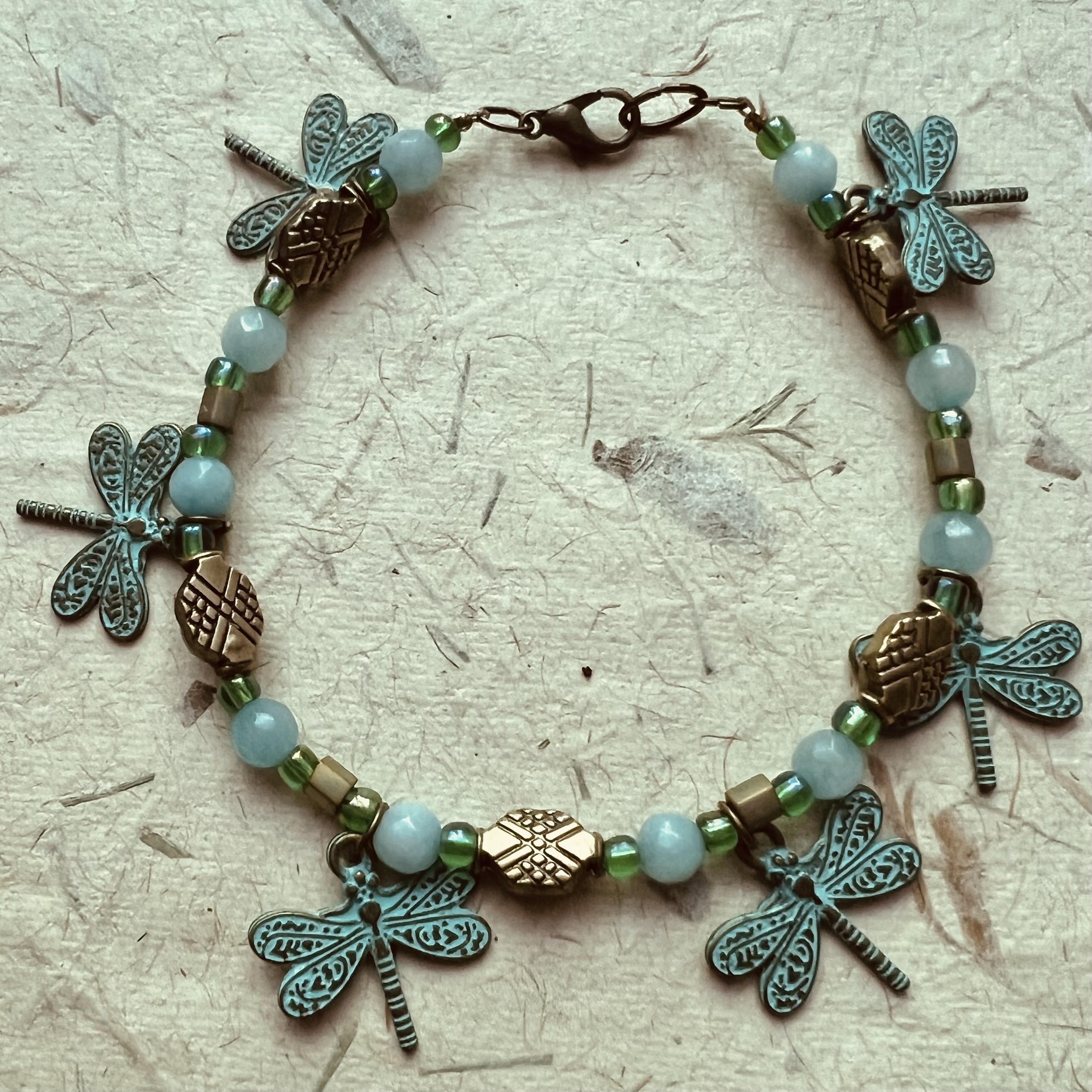 Dragonfly's Delight Bracelet $20.00 Brass charms and Czech beads