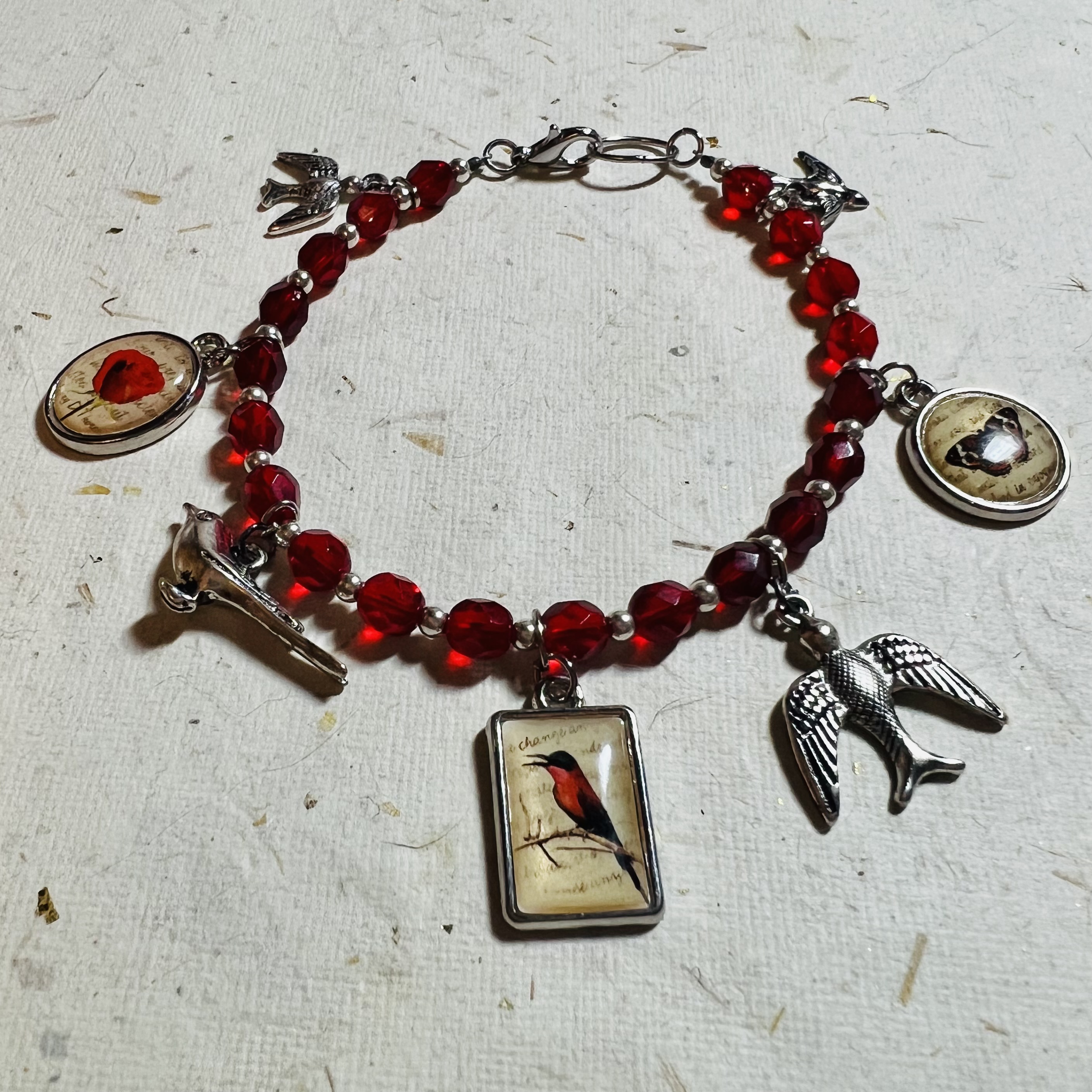 Charming Birds Bracelet $25.00 Czech crystal beads and silver tone bird charms