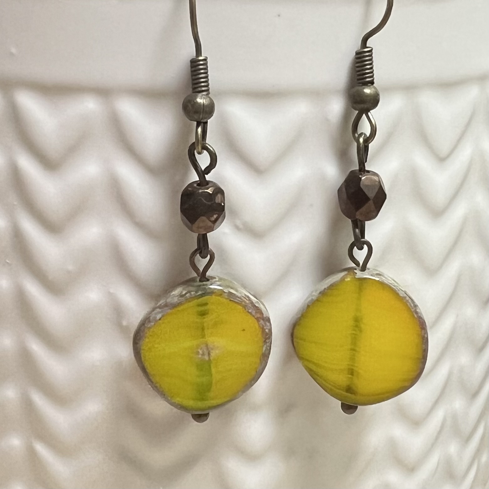 | Slice of Life Earrings $12.00 Czech beads. 1.25" long