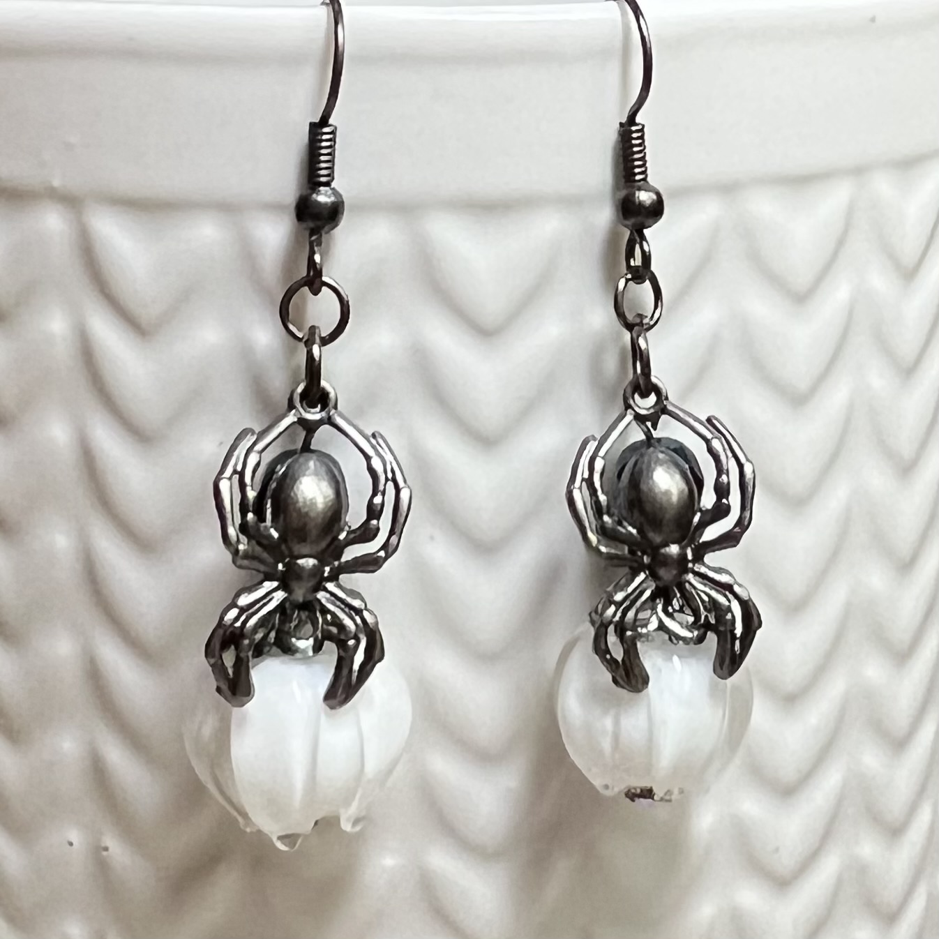 | My Poisonous Earrings $20.00 Spider charms with Czech beads. 1.25" long. SOLD