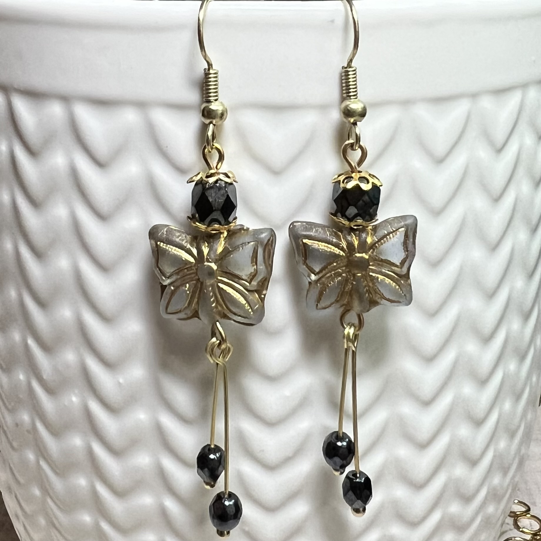 Butterfly Earrings $15.00 Czech butterflies and beads with goldtone ear wires.