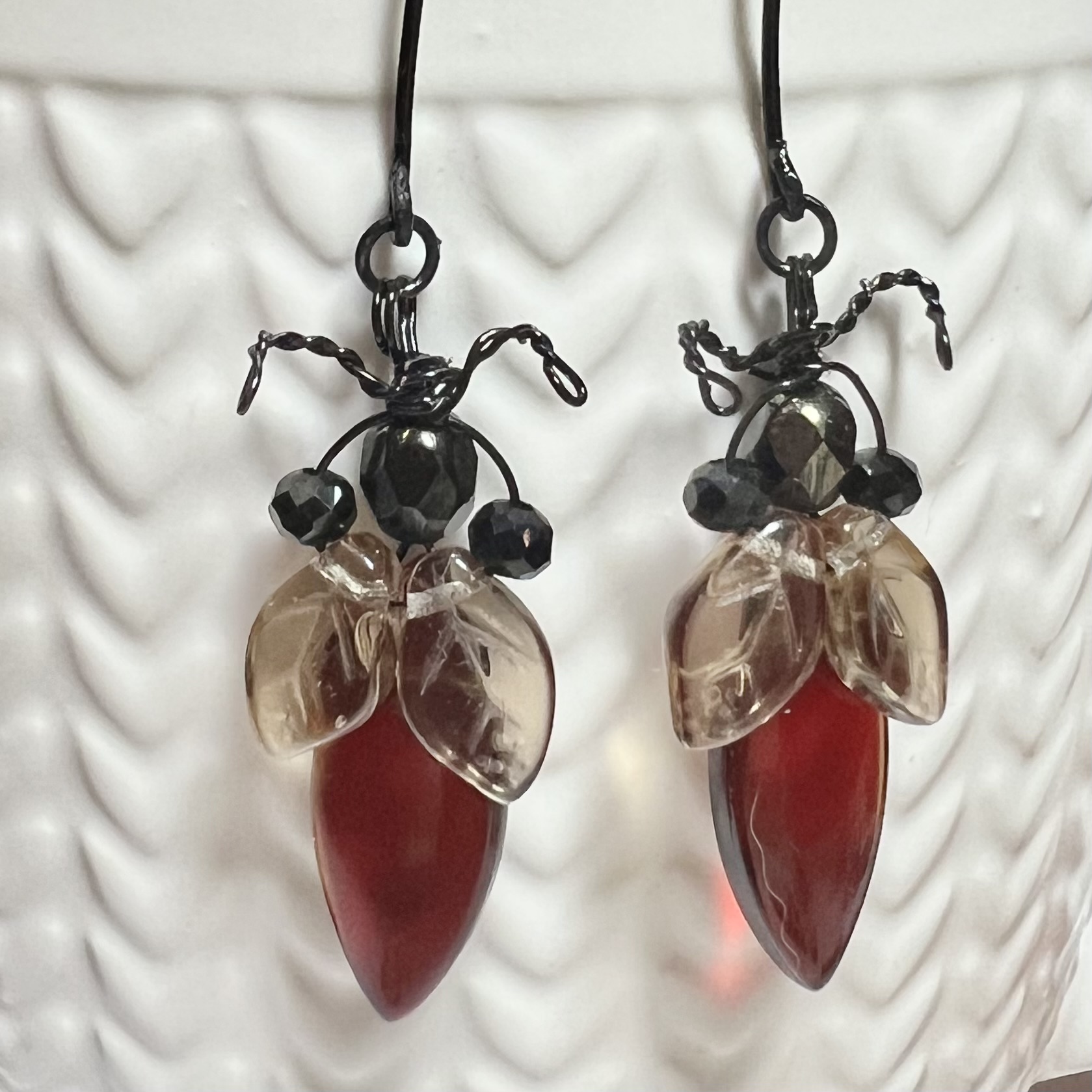 Decorative Earrings $15.00 Czech beads and leaves. 1.75" long.
