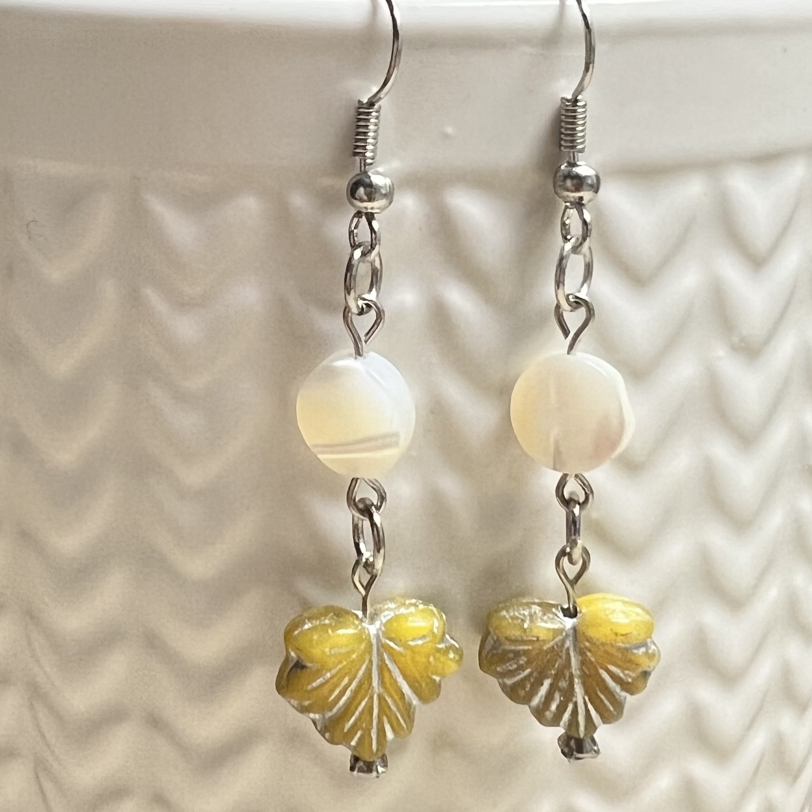 Leaf Drop Earrings $15.00 Czech leaves and beads. 2" long.